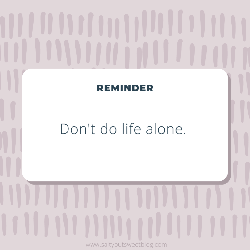As our church says, don’t do life alone. It is uncomfortable to get help. It’s uncomfortable to text your friend that you need advice. It’s uncomfortable to fill out the questions at the doctor’s office. It’s uncomfortable to order Lysa Terkeurst’s books and read them by yourself. It’s uncomfortable to fill your prescriptions at the pharmacy.