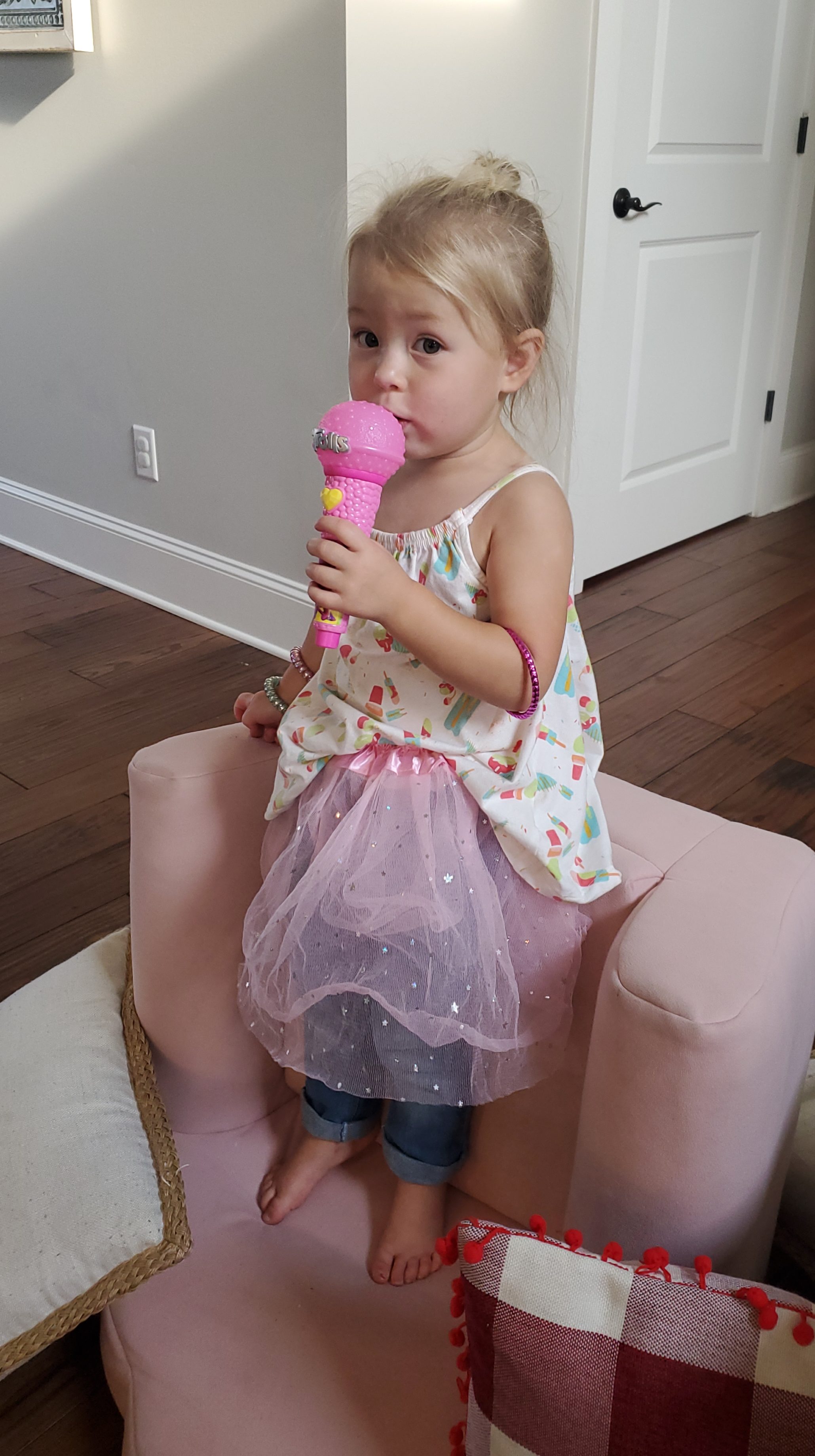 If you know Harlow, you know she’s a ham. She loves dancing to music and has taken on “preaching” as her side hustle. She stands atop surfaces and delivers her sermons. She raises her hands to worship in the car. And her prayers are the type akin to those of that uncle who won’t stop praying while everyone else is fidgeting, ready to carve the Thanksgiving turkey.